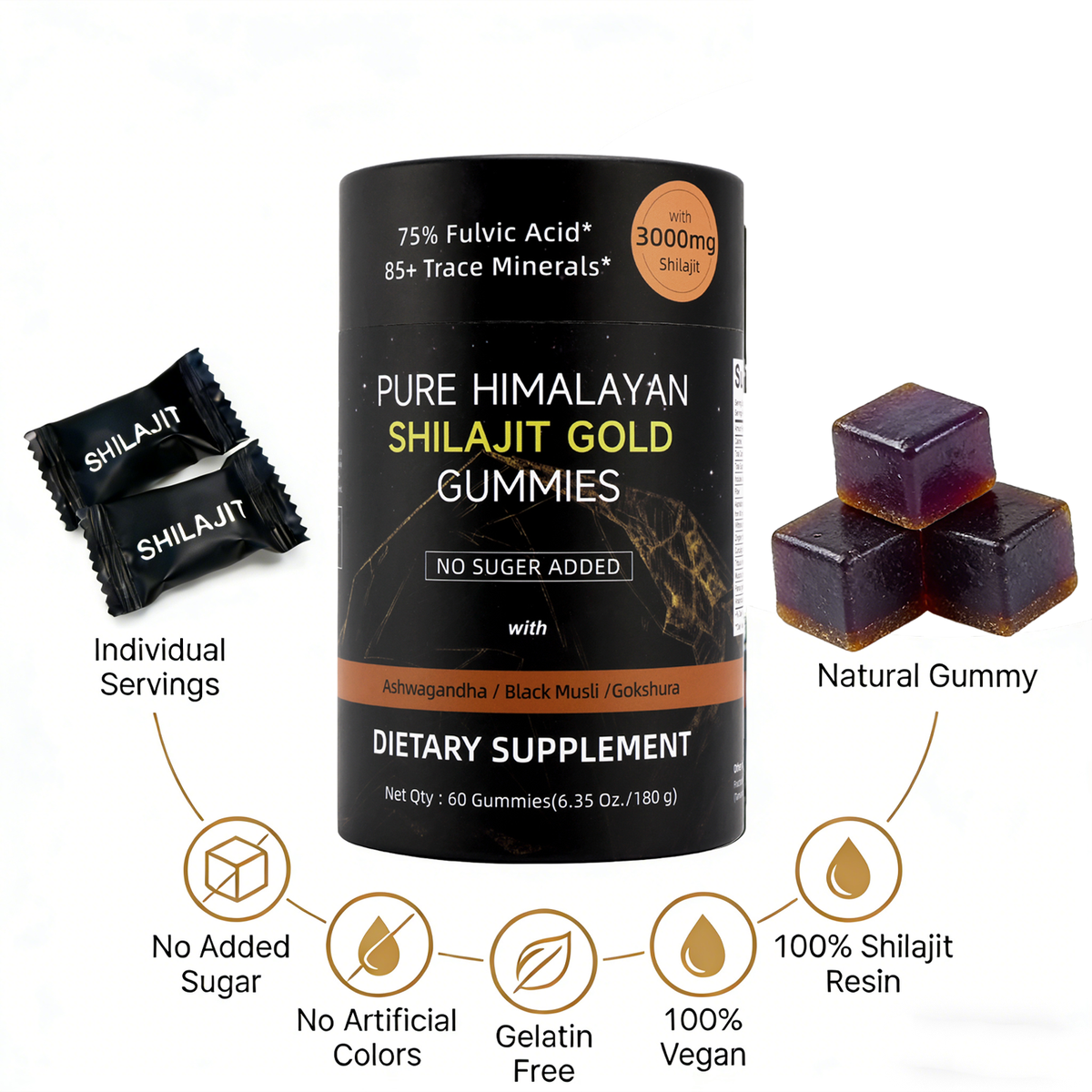 Himalayan Shilajit-Inspired Gummies | Dietary Supplement | 3000mg